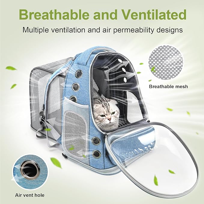 Expandable Cat Backpack,Cat Bubble Backpack Carrier for Carrying Cats, Pets and Small Dogs,Airline-Approved,Designed for Travel, Hiking, Walking,Car (Blue