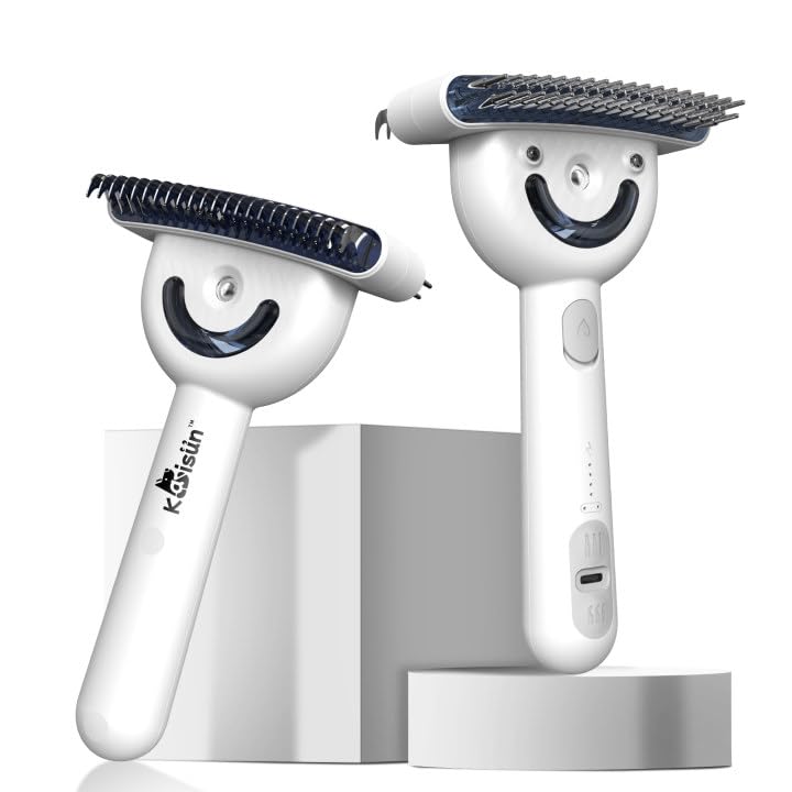 Multifunctional Pet Comb with Spray - 360° Steel Pin Comb and Detangling Knife, Pet Hair Removal Grooming Tool, Anti-static, Waterproof, Rechargeable - Suitable for Long-haired or Curly-haired Pets