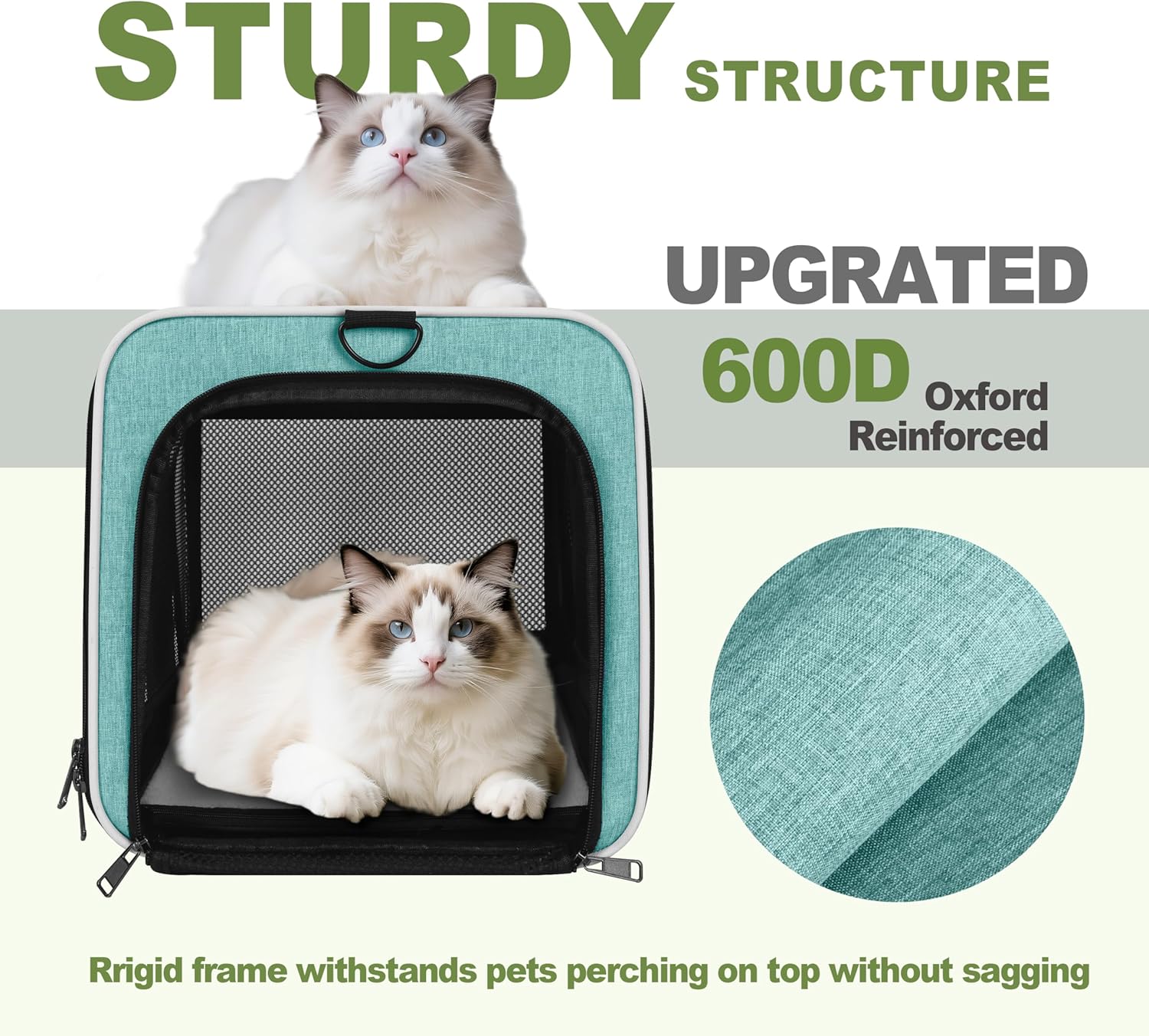 Cat Carrier 18"x11"x11" TSA Approved Ventilated Top Open Softsided Pet Air Travel Bag, Small Animal Basic Crate Shih Tzu Dog Kennel Carry Case, 4-Mesh-Side Kitty Carry on up to 20lbs Teal