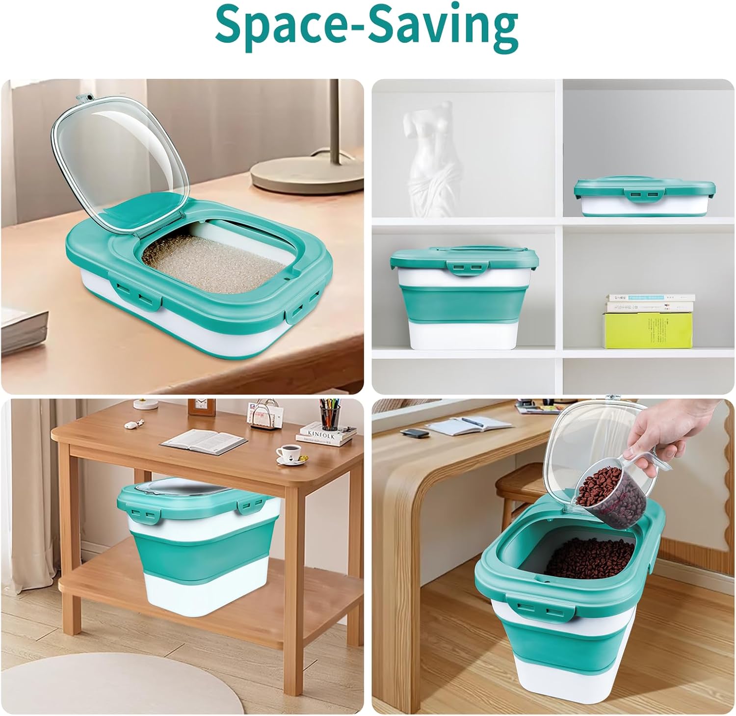 Rice Storage Container, Collapsible Airtight Food Storage Containers 6-20 Lbs, Rice Dispenser with Measuring Cup and Small Bin for Flour Cereal Pasta Grain, Cat Pet Dog Bird Food Container