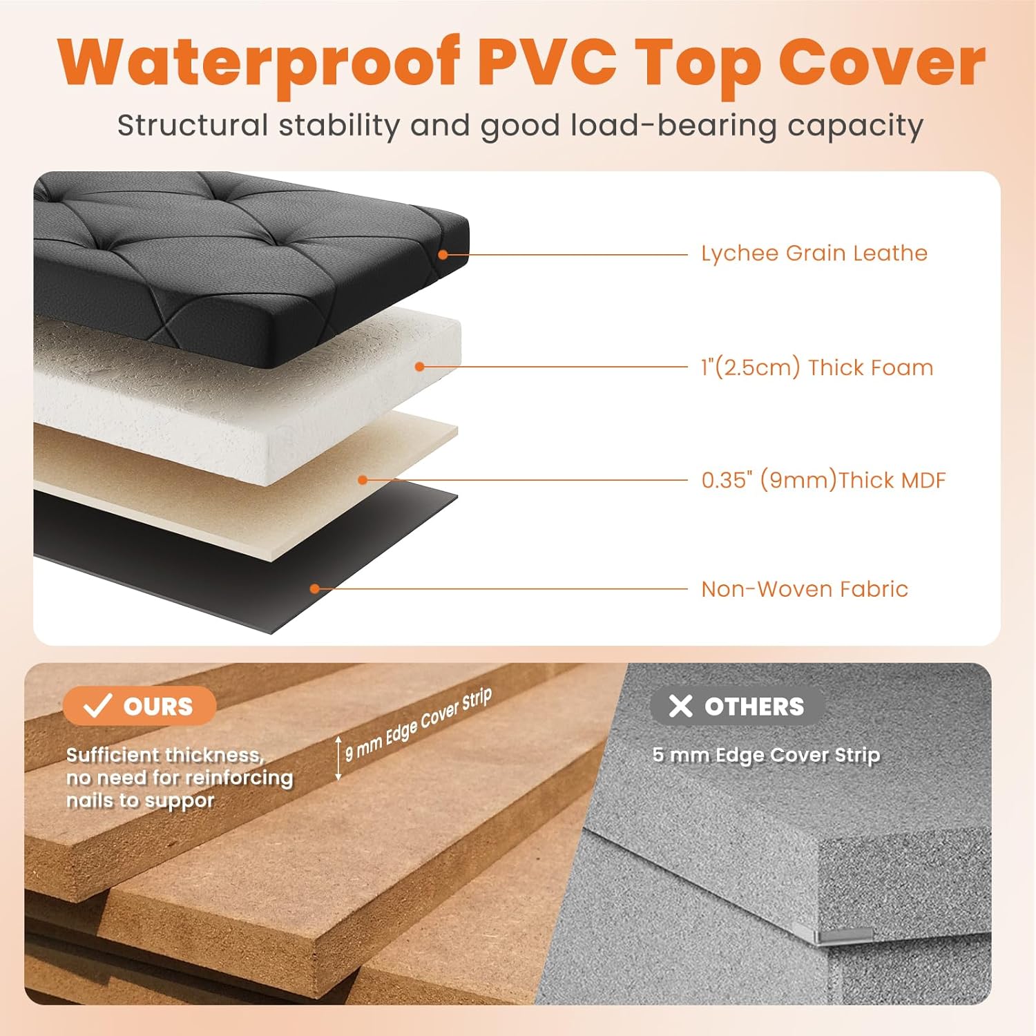 - 【Premium & Durable Build】The black Sweetcrispy storage ottoman features chic Lychee Grain Leather, while brown uses sleek Synthetic Leather—both super comfy and built to last. No flimsy stuff here! We use 4 layers of reinforced material with 9mm-thick edges, supporting up to 660 lbs without extra nails. Just sturdy Sweetcrispy quality!