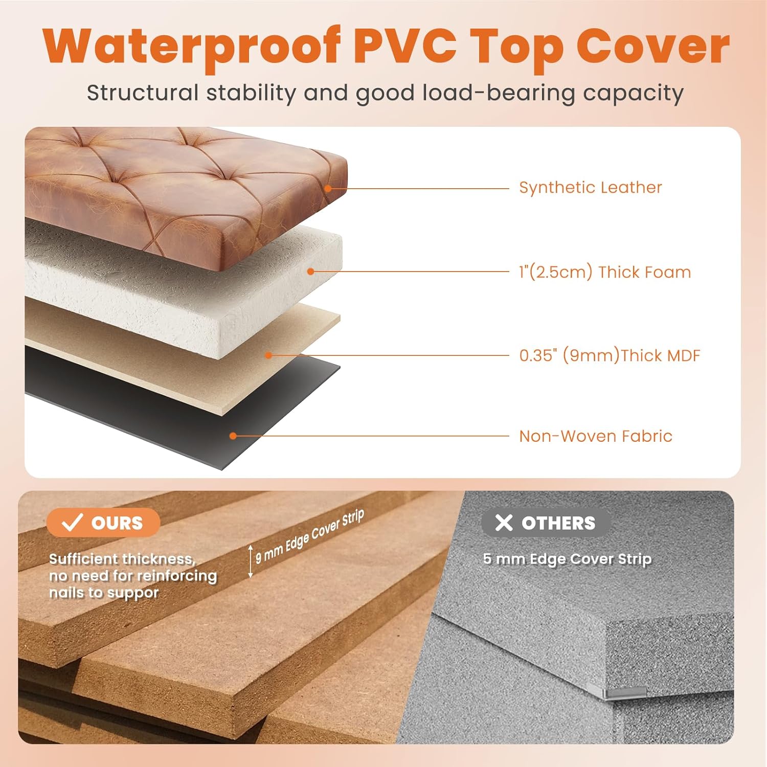 - 【Premium & Durable Build】The black Sweetcrispy storage ottoman features chic Lychee Grain Leather, while brown uses sleek Synthetic Leather—both super comfy and built to last. No flimsy stuff here! We use 4 layers of reinforced material with 9mm-thick edges, supporting up to 660 lbs without extra nails. Just sturdy Sweetcrispy quality!