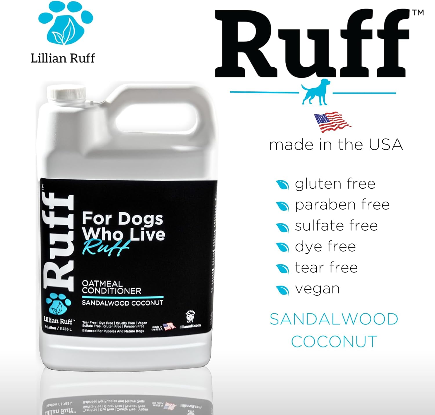 Ruff by Lillian Ruff Sandalwood Coconut Oatmeal Conditioner for Dogs – Moisturize & Soothe Dry Itchy Skin, Promote Healthy Coat, Tear-Free, Sulfate-Free, Paraben-Free, Made in USA (Gallon)