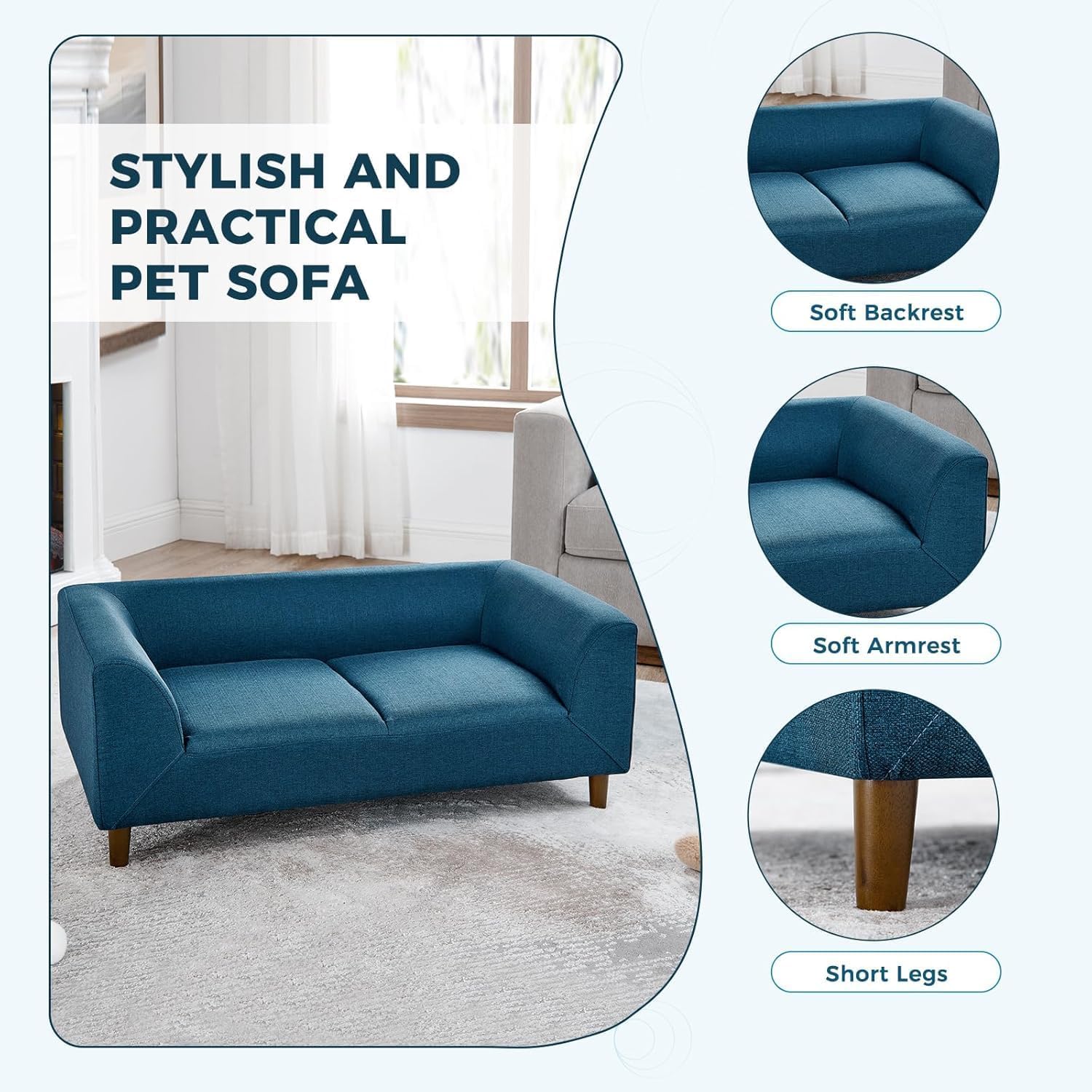 - Durable & Stylish Materials: Made from durable rubber wood, plywood, and soft linen fabric, this dog bed sofa is built to last and easy to clean.