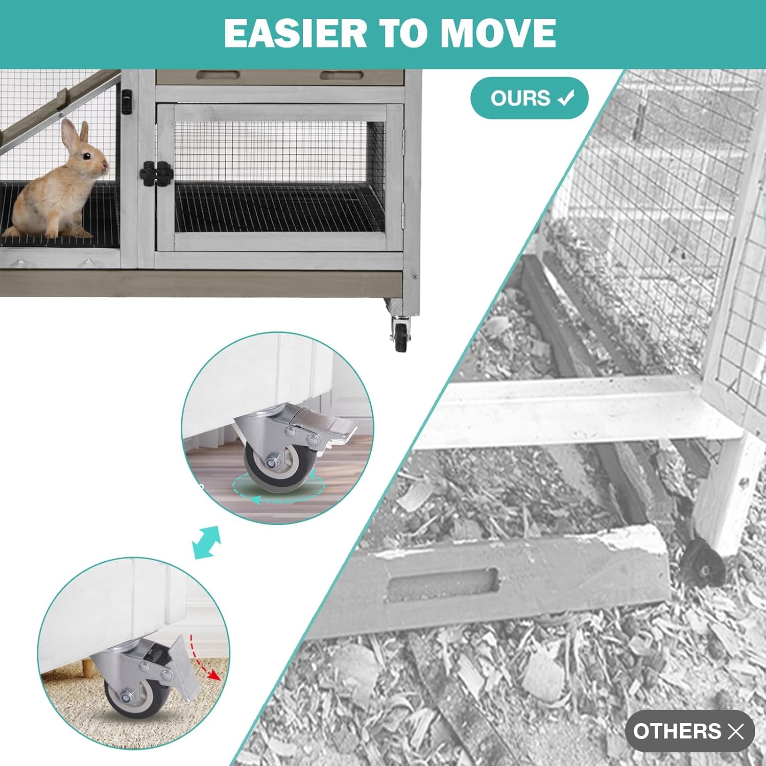 - Mobility & Space-Saving Design: Equipped with 4 smooth-rolling wheels (2 lockable brakes), move the cage freely for indoor layout changes or occasional outdoor sunlight. The compact 39.3"L x 22"W x 36.8"H size fits snugly in homes while offering ample room for 2-4 pets