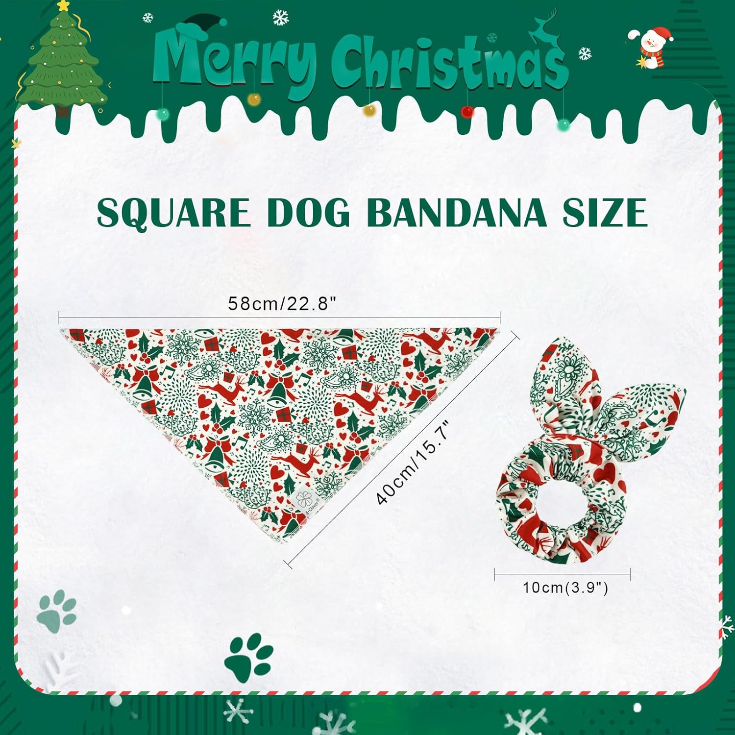- Matching Bandana and Scrunchie Set: It's full of love when your pets is wearing the christmas elements bandanas and you are wearing the bow scrunchies. When traveling, sleeping, taking photos or daily warking, adorable winter dog bandana and scrunchie is a pretty accessories. The the hair tie can be worn as a wrist accessory and hold your hair. Beautiful dog drool bibs and scrunchie with christmas tree pattern, it’s nice photo props.