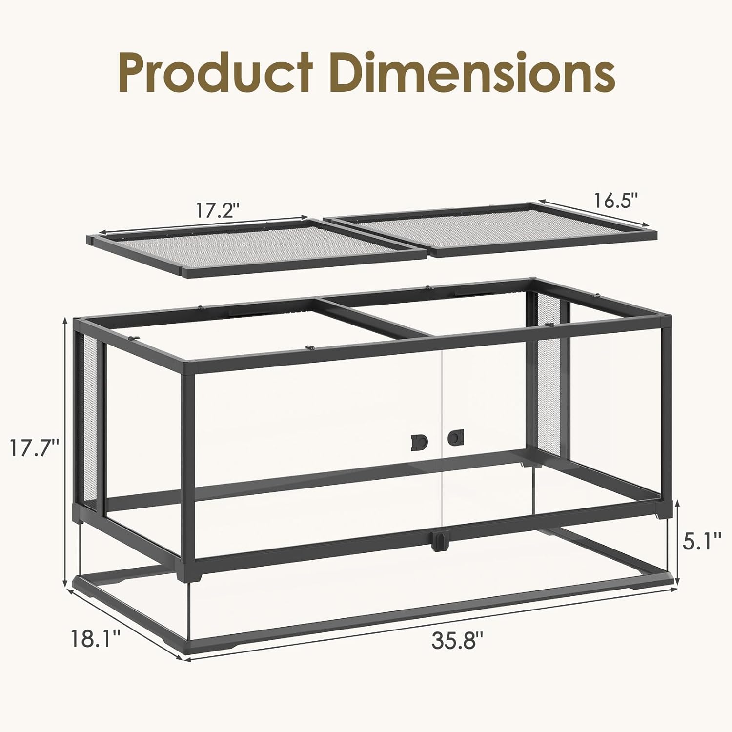 - Heating-Compatible Raised Base & Cable Port: This reptile tank features a raised base compatible with heating mats and a top sliding cable port, allowing easy wiring for heaters or lights while keeping cords hidden