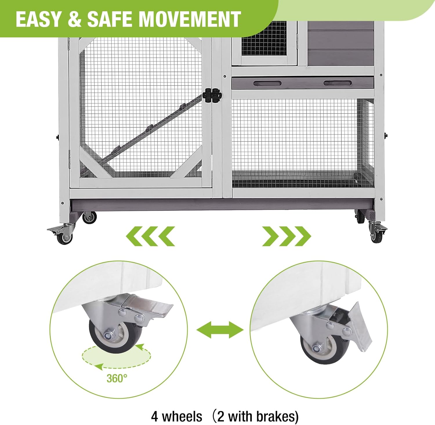 - Leak-Proof Trays: Two deep, pull-out trays keep your bunny's home clean and dry. These trays are leak-proof, making cleaning a breeze and providing a healthier environment for your pet