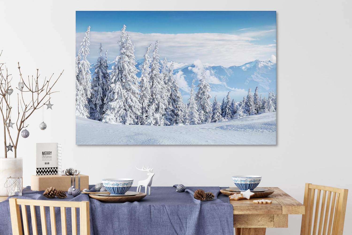 Nature Wall Art Prints - Ocean Forest Mountain Lake Canvas Landscapes - Small to Extra Large Living Room Bedroom Kitchen Bathroom Décor (Snow Covered Trees on Mountain, 35L" x 53W")