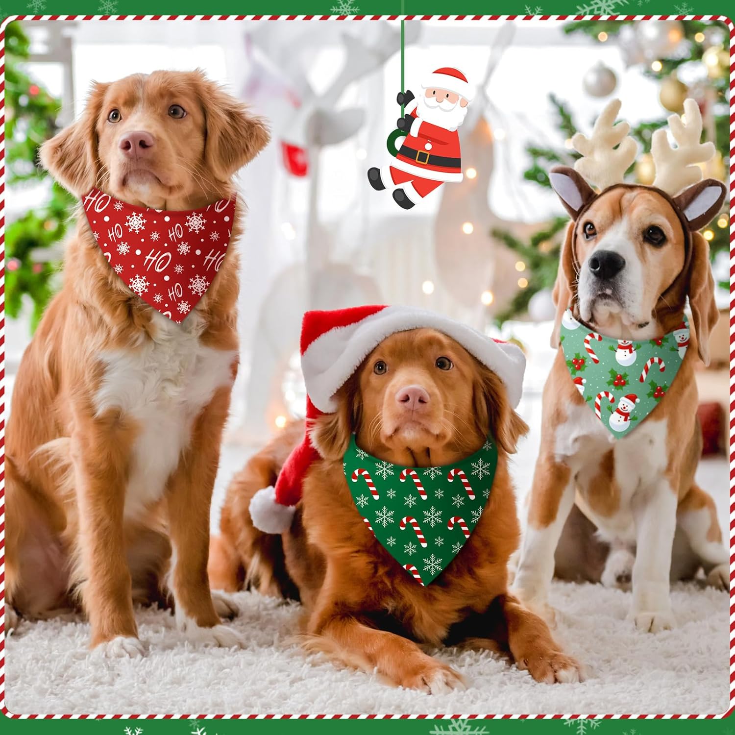 - Exquisite Design: our christmas dog bandana for dogs are printed with a variety of chic designs, such as Santa, Snowflake, Elk, Snowman, Reindeer, Gingerbread, candy cane and more festival elements, mainly colored with red and green, full of lively and active christmas atmosphere, making your dog more charming in the crowd