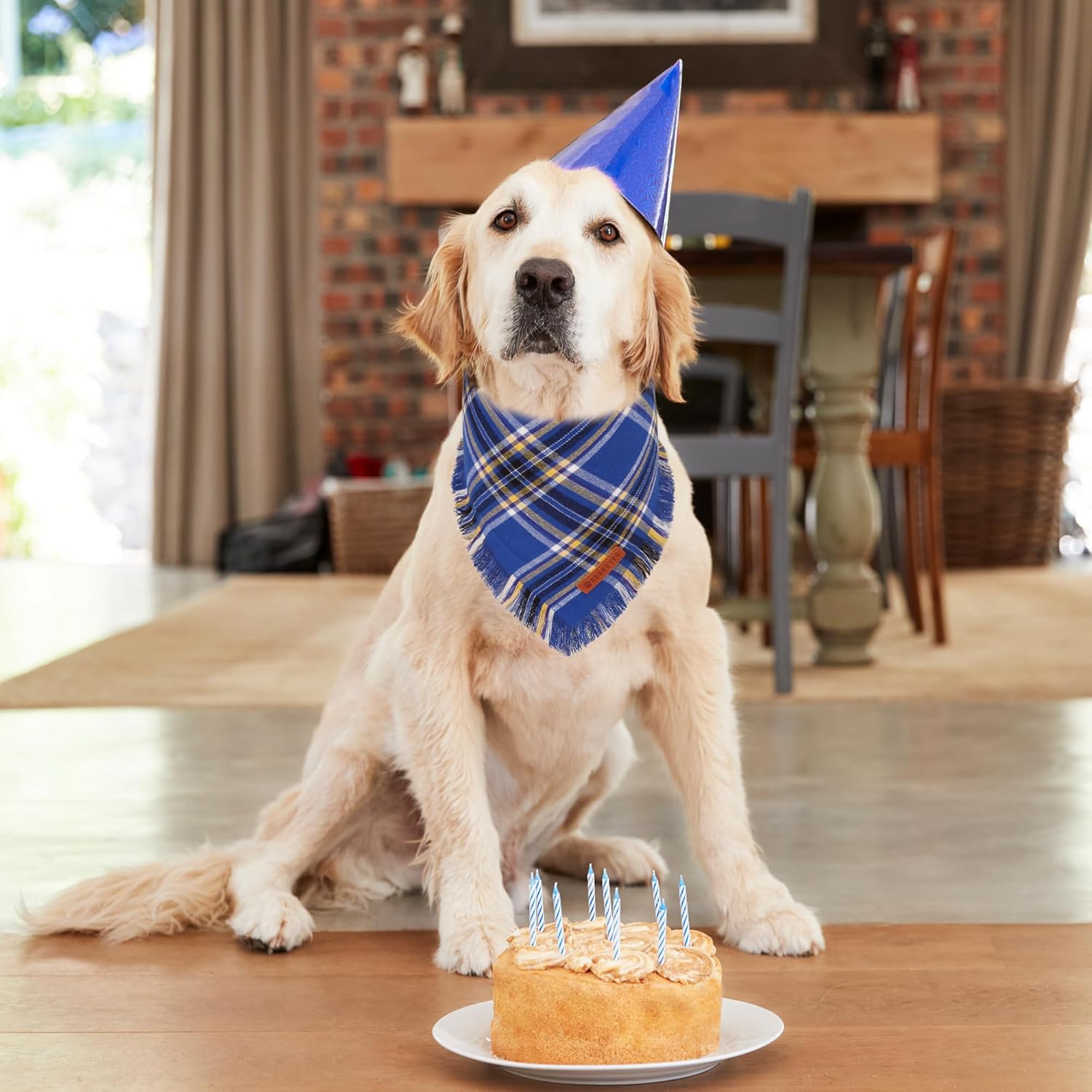 - Package: 1 * bold blue checkered dog bandana, 1 * light blue plaid dog bandana, A fantastic gift for owners of boy dogs—dress up your furry friend in stylish blue attire, or share the cool style with other dog lovers!