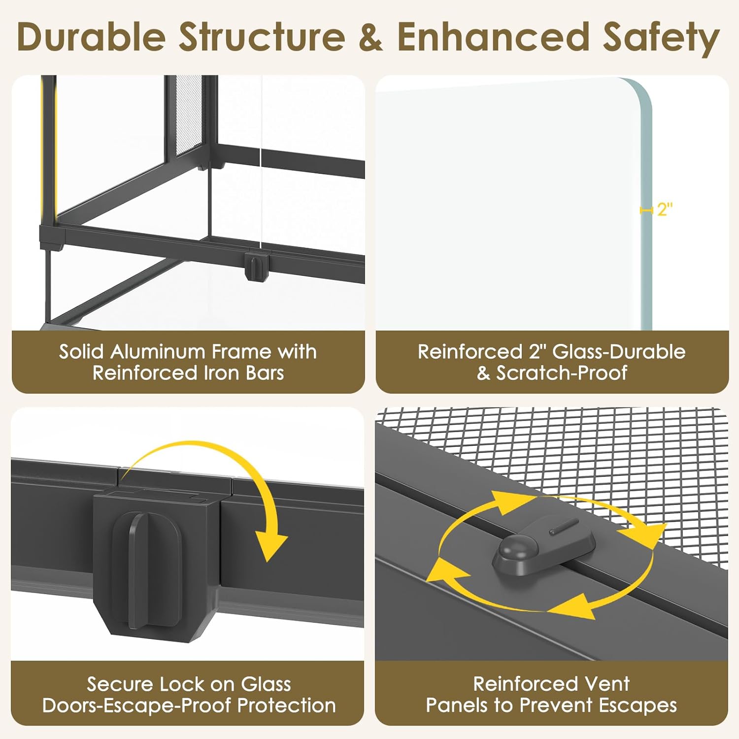 - Escape-Proof Safety Design: This snake enclosure features a secure lock on the glass doors and reinforced vent panels, firmly preventing unwanted opening and effectively stopping pets from escaping